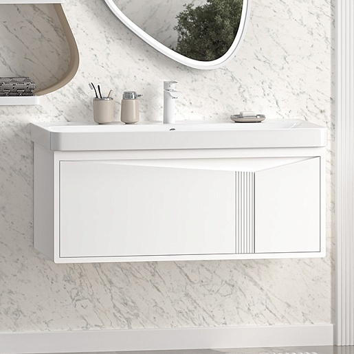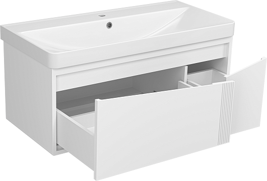 Подвесная тумба с раковиной Brevita Cascade 100 - арт. CAS-09100-011Я / RCW-1418100WH.
