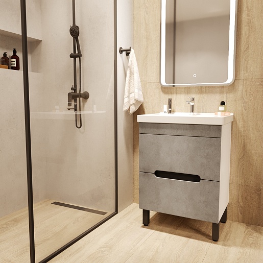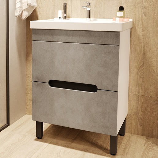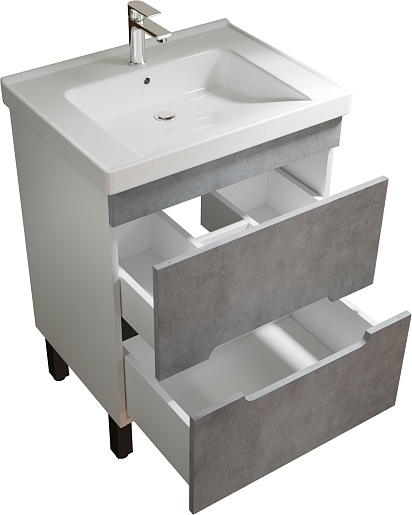Тумба под раковину Честер 60 белая/бетон