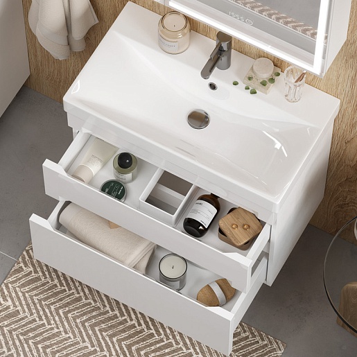 Тумба под раковину Corner 70 2 ящика подвесная белая