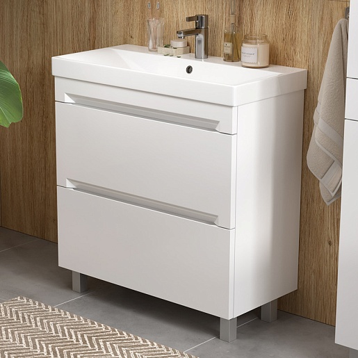 Тумба под раковину Corner 80 2 ящика напольная белая