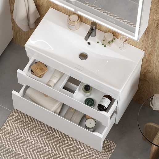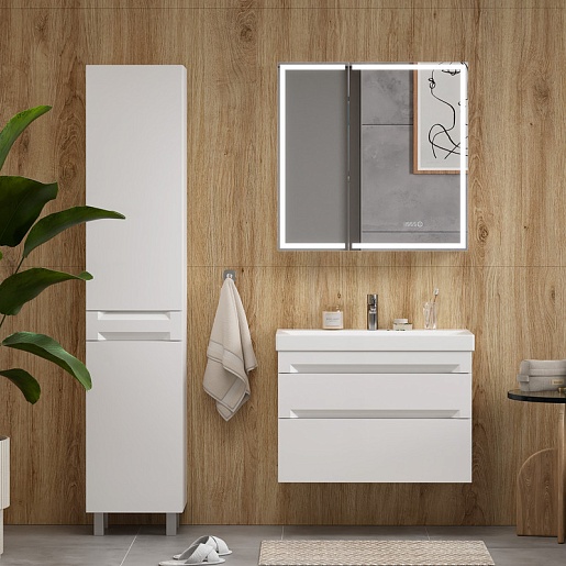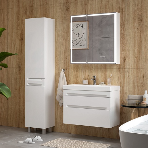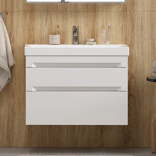 Тумба под раковину Corner 80 2 ящика подвесная белая