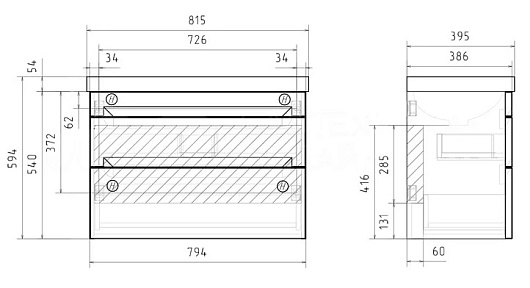 Equil Тумба с раковиной Corner 80 2 ящика подвесная белая