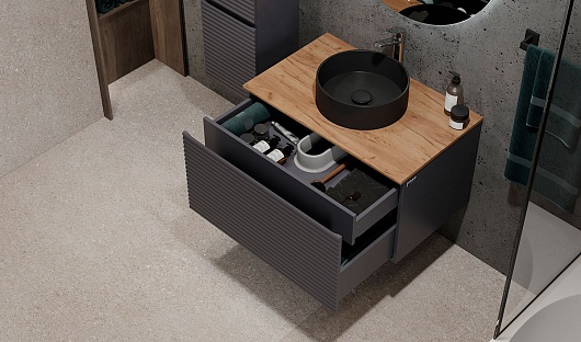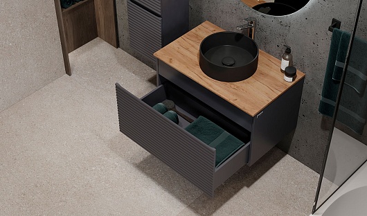 Jorno Тумба с раковиной Cossety 80 подвесная антрацит/дуб Крафт золотой