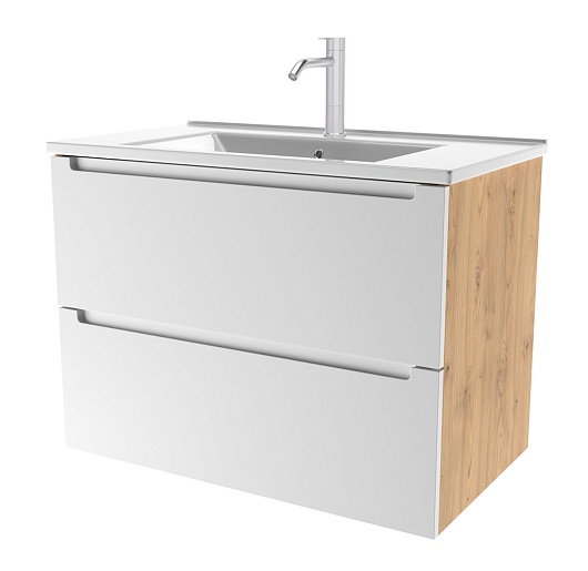 Тумба под раковину Дион 100 подвесная под столешницу матовая белая/дуб