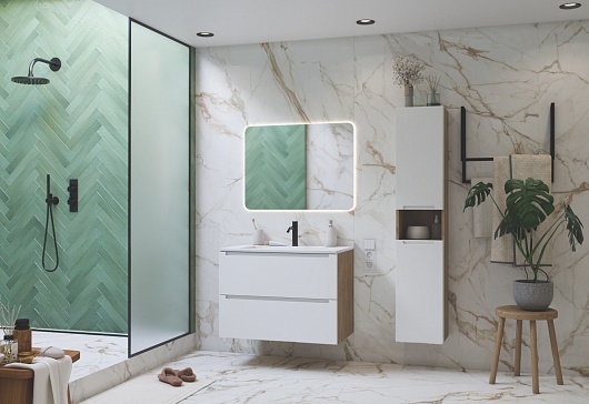 Зов Тумба с раковиной Дион 100 подвесная матовая белая/дуб