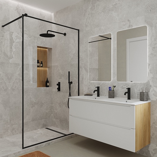 Тумба под раковину Дион 120 подвесная матовая белая/дуб
