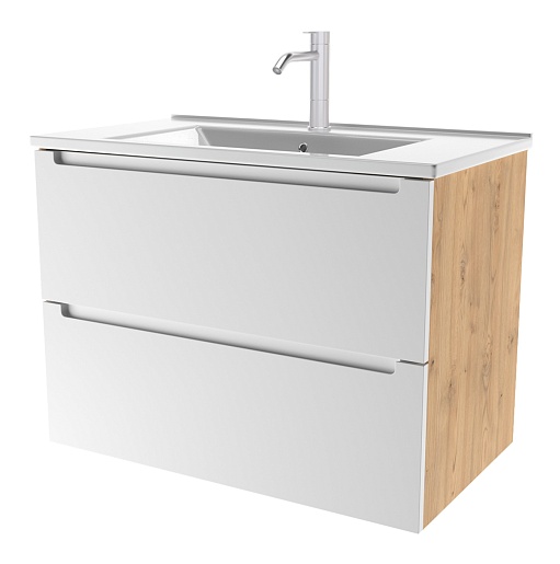 Тумба под раковину Дион 60 подвесная под столешницу матовая белая/дуб
