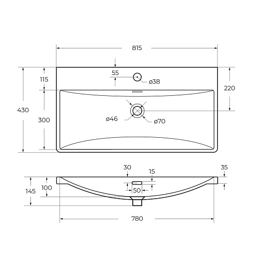 Тумба под раковину Due 80 подвесная Bianco Lucido