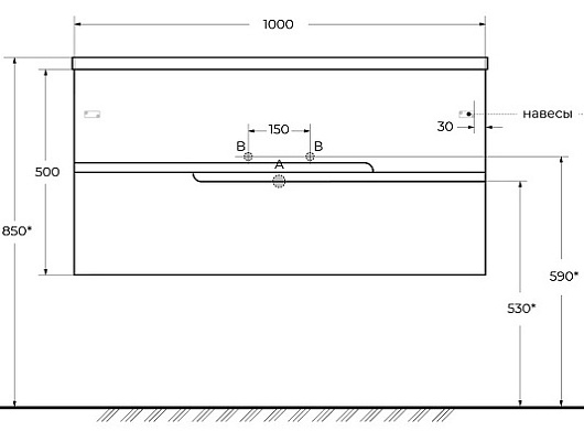 Тумба под раковину Duet-N 100 подвесная Bianco Lucido