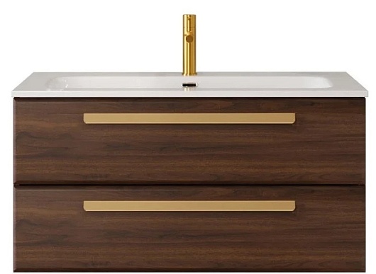 Cezares Тумба с раковиной Eco Cer-N 100 орех шоколад софт CZR-8073-100 ручки сатиновое золото