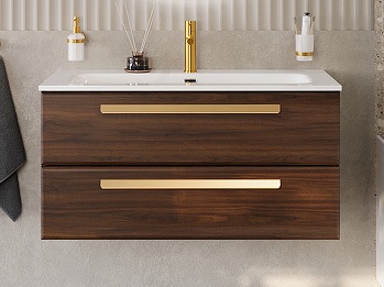 Cezares Тумба с раковиной Eco Cer-N 100 орех шоколад софт CZR-8095-100 ручки сатиновое золото