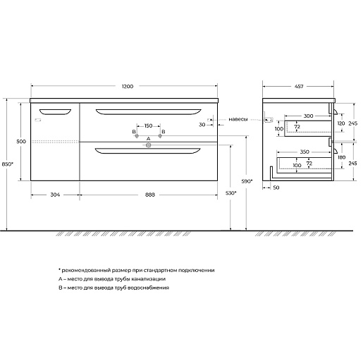 Мебельная раковина Duet 120 R CZR-8095-120-R белая глянцевая