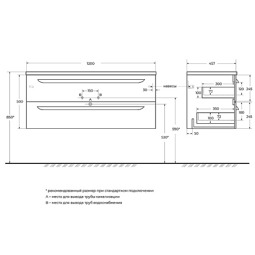 Мебельная раковина Duet 120 белая глянцевая CZR-8073-120