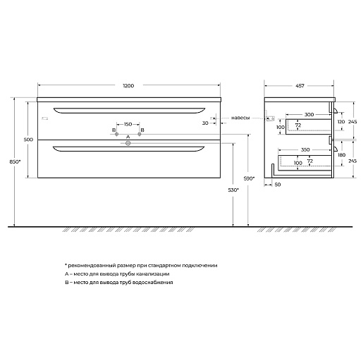 Мебельная раковина Duet 120 CZR-8095-120 белая глянцевая