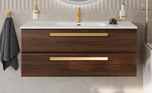 Cezares Тумба с раковиной Eco Cer-N 120 орех шоколад софт ручки сатиновое золото