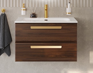 Cezares Тумба с раковиной Eco Cer-N 80 орех шоколад софт CZR-8073-80 ручки сатиновое золото