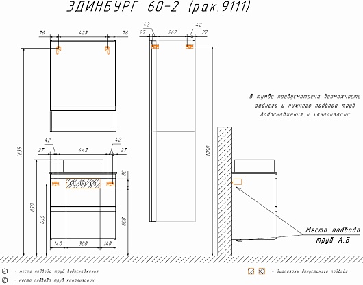 Подвесная тумба с раковиной Comforty Эдинбург 60 2 - арт. 00-00005701CF.