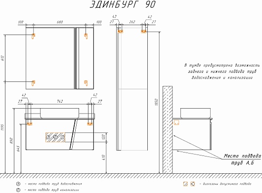 В комплекте: тумба, столешница, раковина, крепеж.