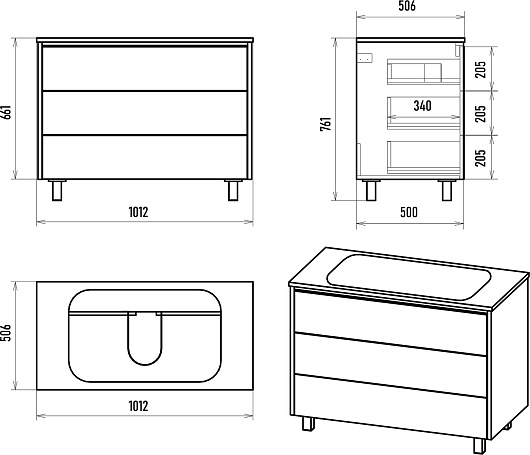 Тумба с раковиной Brevita Elche 100 - арт. ELC-0100-0302Я / 0117.
