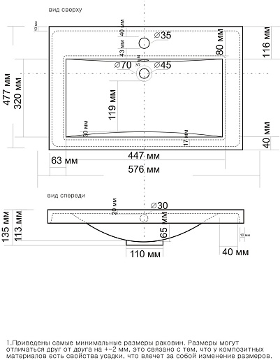 - Раковина из литьевого мрамора со слив-переливом.