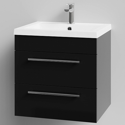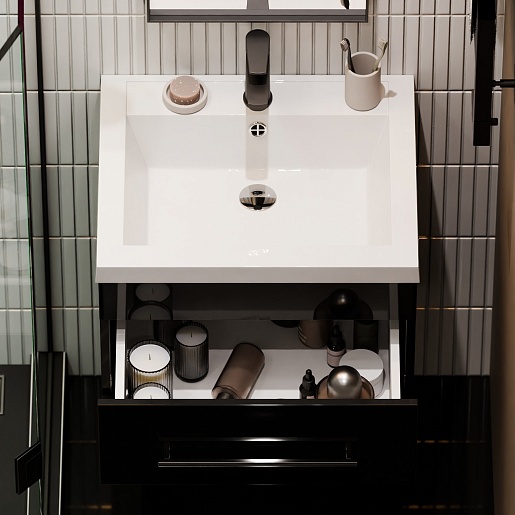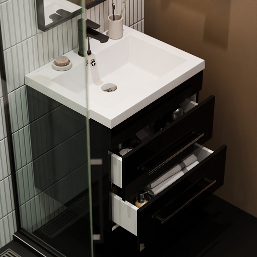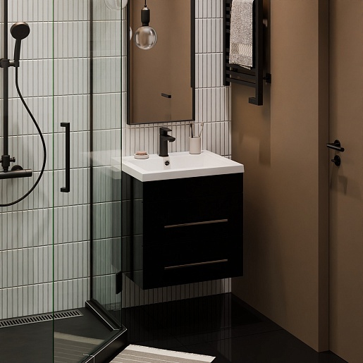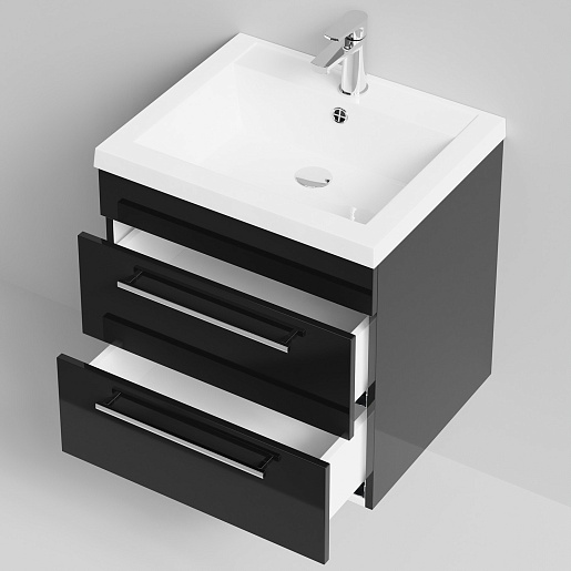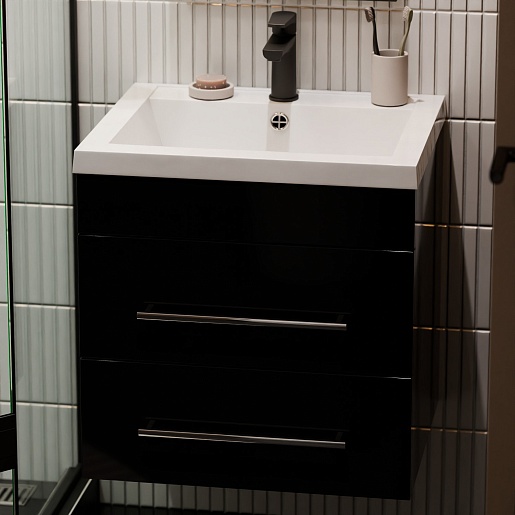 Водолей Тумба с раковиной Элис 58 подвесная 2 ящика черная