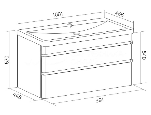 Тумба под раковину Eltoro 100 2 ящика подвесная черный софт