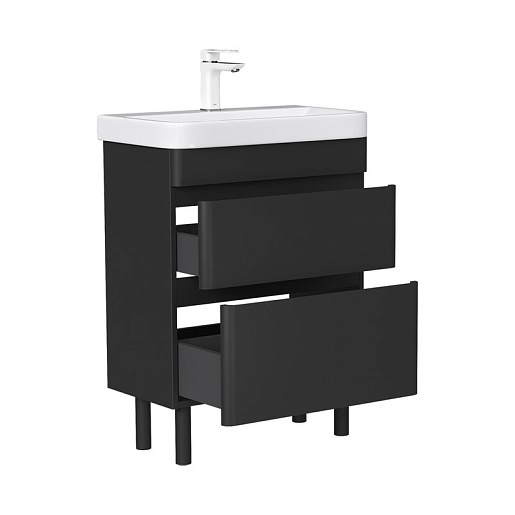 Тумба под раковину Eltoro 60 2 ящика напольная черный софт