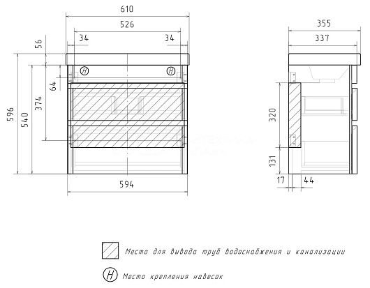 Тумба под раковину Eltoro 60 2 ящика подвесная черный софт