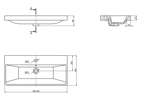 - Диаметр слива: 4,5 см.