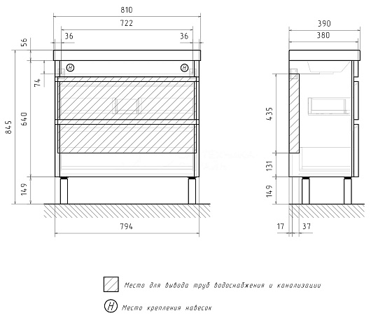 Тумба под раковину Eltoro 80 2 ящика напольная черный софт