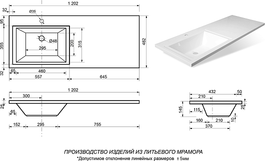 - Раковина из литьевого мрамора Эстет Даллас 120 L.