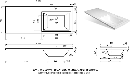 - Раковина из литьевого мрамора Эстет Даллас 120 R.