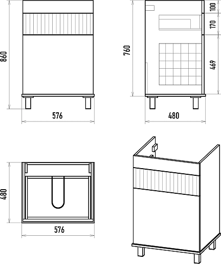 Комплектация: тумба, раковина, ножка (4 шт.).