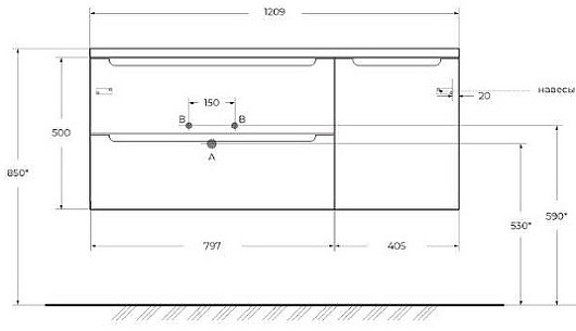 Тумба для умывальника ETNA 1200 Bianco Lucido