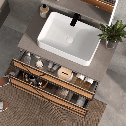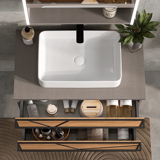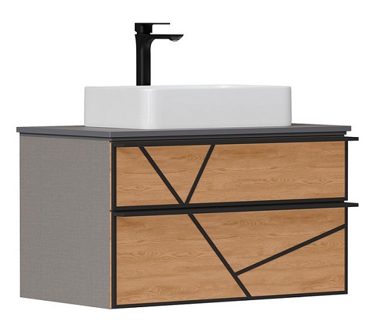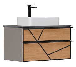 Equil Тумба с раковиной Ferro 80 2 ящика подвесная лен антрацит/дуб мадера