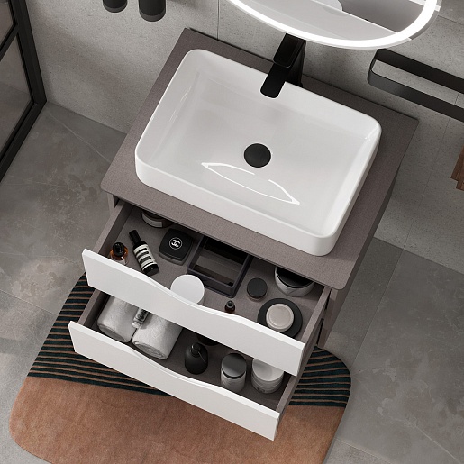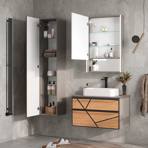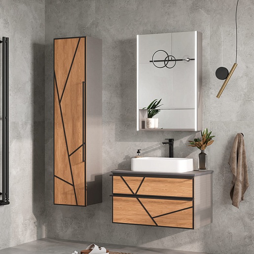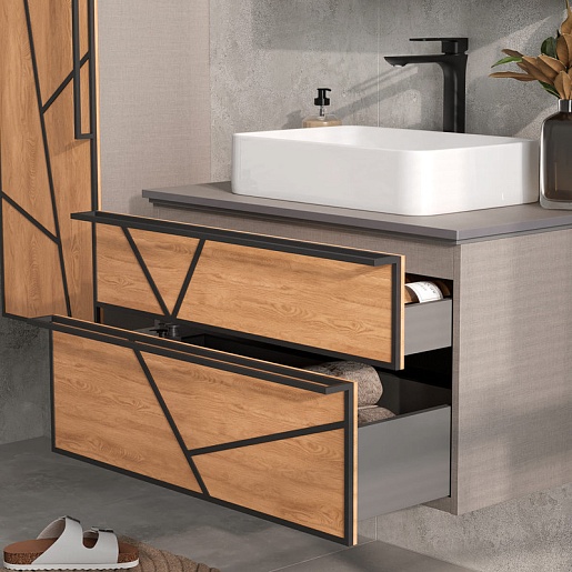 Тумба под раковину Ferro 80 2 ящика подвесная лен антрацит/дуб мадера