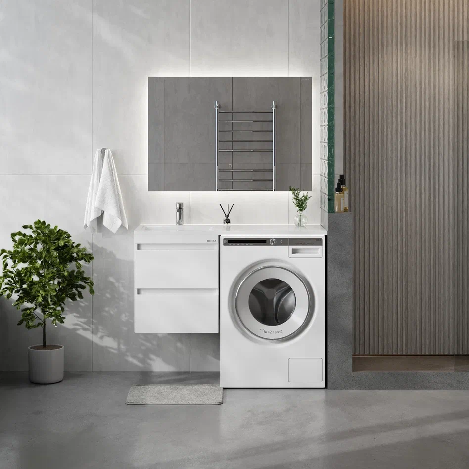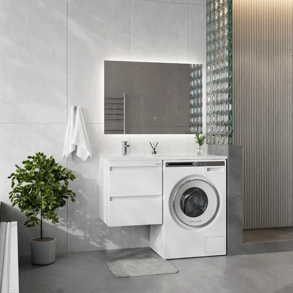 Тумба под раковину Флэтон 38 подвесная под стиральную машину белая