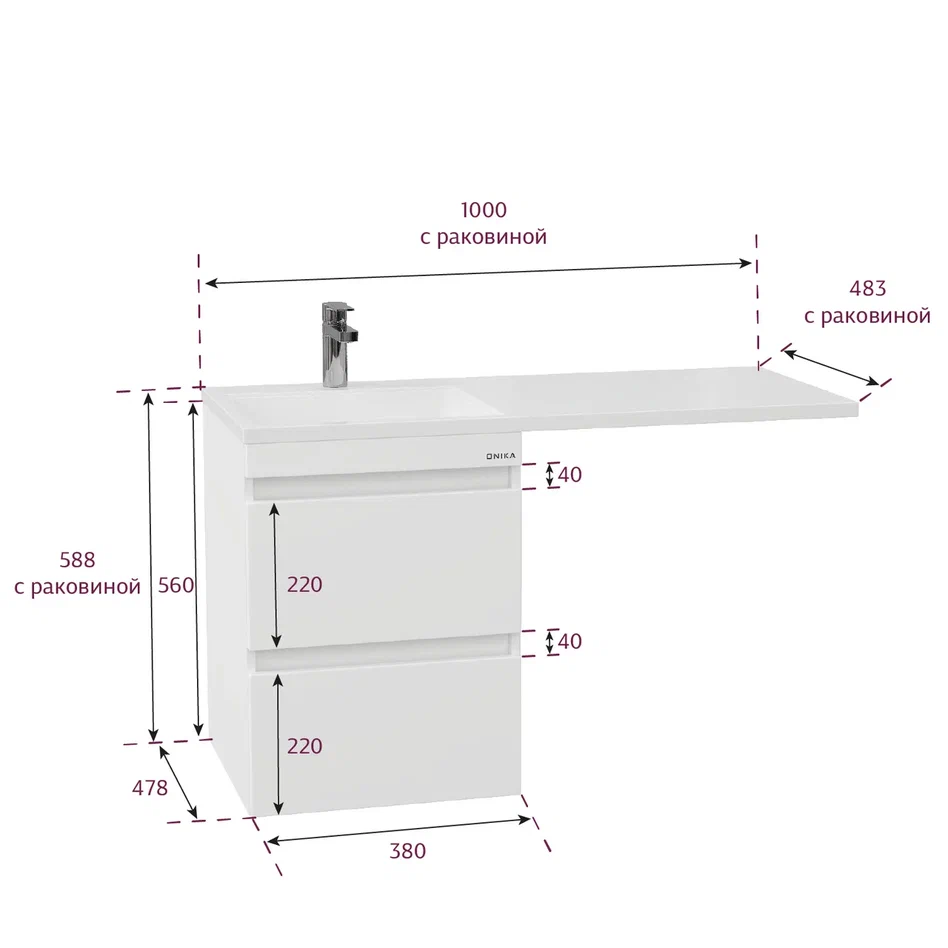 Onika Тумба с раковиной Флэтон 38 белая раковина Марсал 100 левая чаша