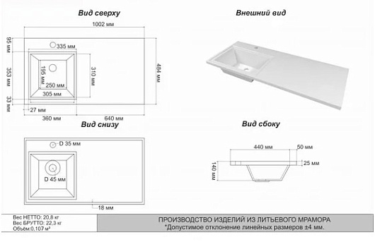 - Литьевой мрамор, из которого сделана раковина, экологичен и совершенно безвреден.