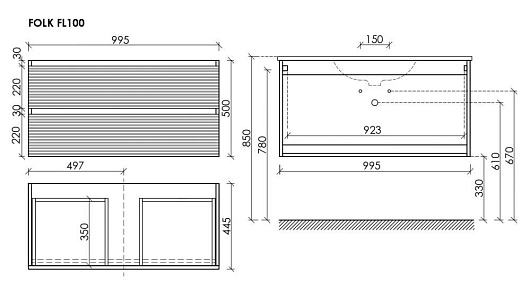 Тумба под раковину Folk 100 ergraut soft