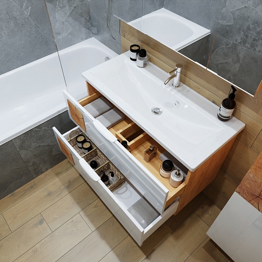 Тумба под раковину Форест 100 подвесная белый/дуб золотой