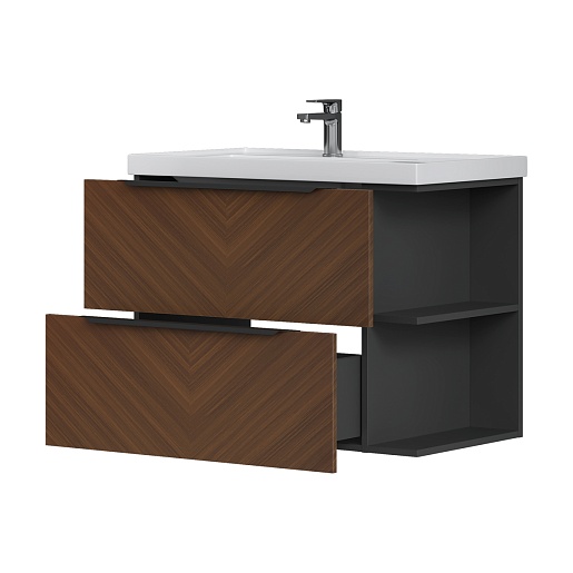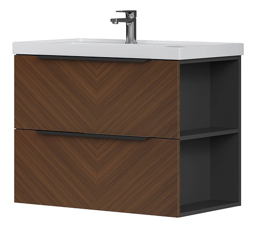 Тумба под раковину Forest 80 2 ящика подвесная орех/графит
