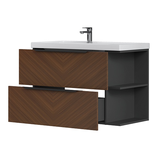 Тумба под раковину Forest 90 2 ящика подвесная орех/графит