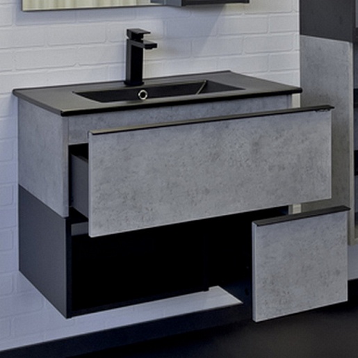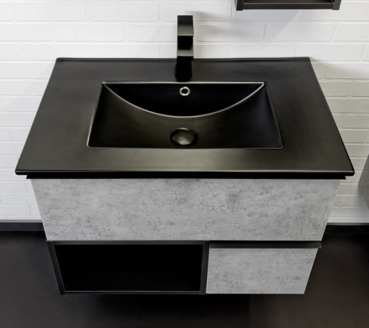 Comforty Тумба с раковиной Франкфурт 75 75EMB подвесная бетон светлый/черная