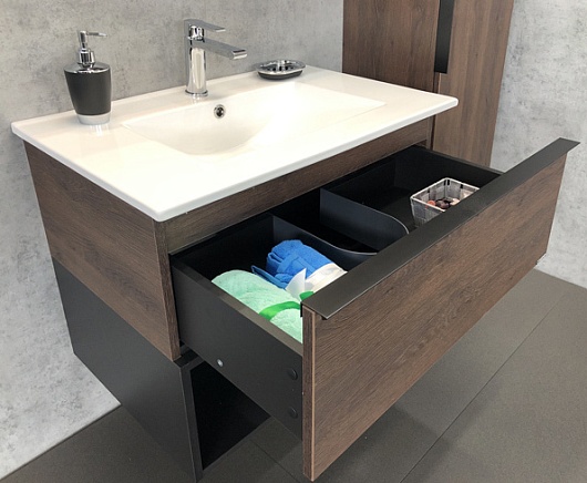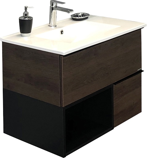 Comforty Тумба с раковиной Франкфурт 75 подвесная дуб шоколадно-коричневый/черная