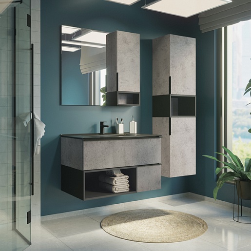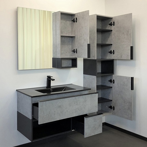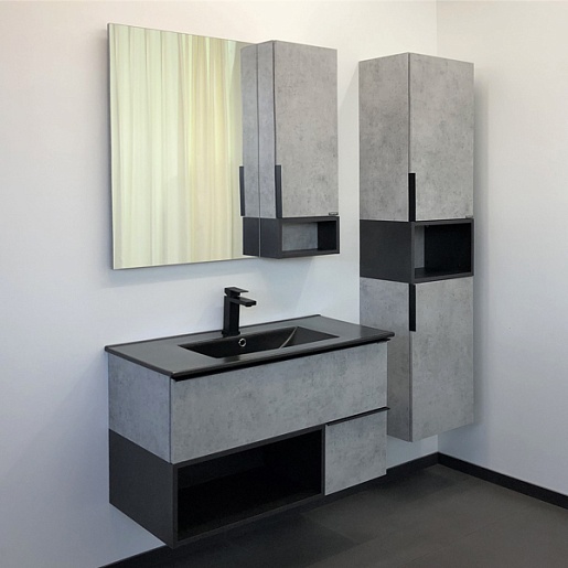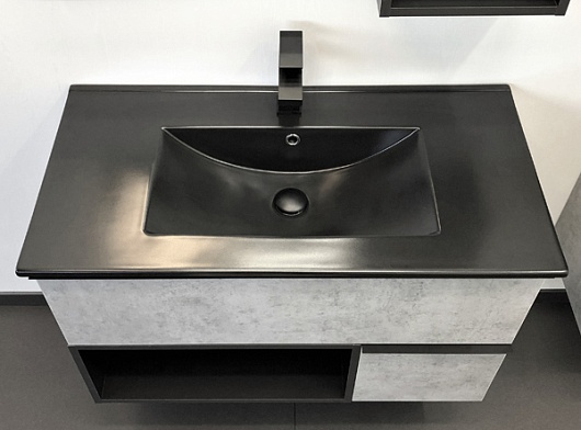 Comforty Тумба с раковиной Франкфурт 90 90EMB подвесная бетон светлый/черная