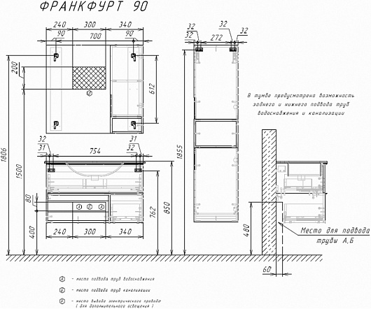 Подвесная тумба с раковиной Comforty Франкфурт 90 - арт. 00-00006503CF.