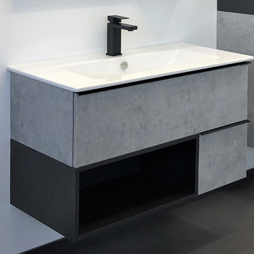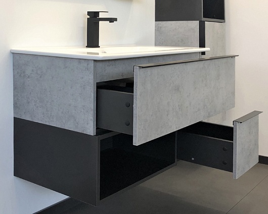 Comforty Тумба с раковиной Франкфурт 90 подвесная бетон светлый/черная