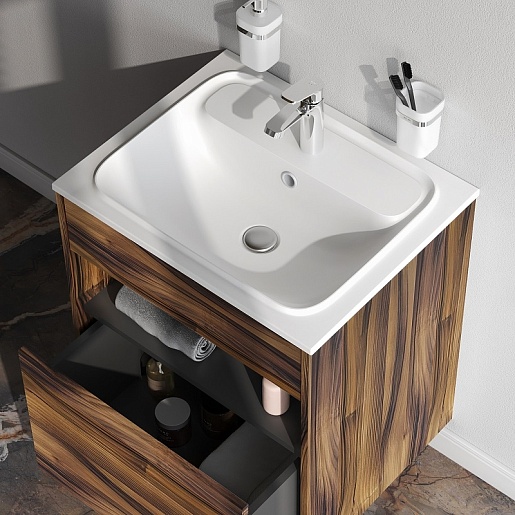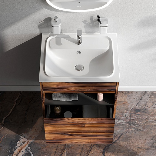 Подвесная тумба с раковиной AM.PM Func 60 темное дерево - арт. M8FFUX0601OF / M8FWPC0600WM.