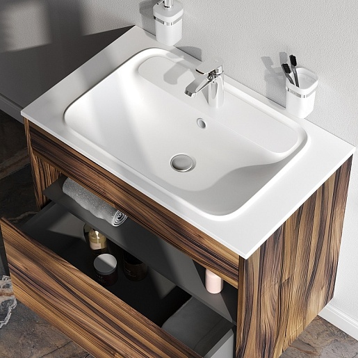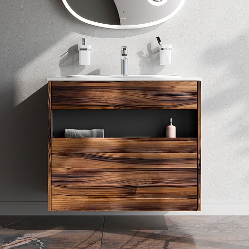 Подвесная тумба с раковиной AM.PM Func 80 темное дерево - арт. M8FFUX0801OF / M8FWPC0800WM.